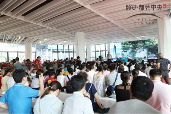随后现场活动迎来最为隆重的一个环节——颐安都会中央5期全新时代样板盛大开放的启动仪式。来自颐安集团的副总裁戴文彪先生、营销总监游金珠女士、深莞惠事业部常务副总经理曾凯凯先生,以及来自AECOM副总裁兼华南区总经理王一旻先生、新西林景观国际总经理兼首席设计师黄剑锋先生、世联行深圳地区副总经理王丹女士、合富辉煌深惠公司总经理李举明先生以及深圳壹地产创始人潘川玉女士等合作单位、媒体界跨行业名流大咖共同见证开启了颐安都会中央5期全新都会生活的精彩时刻。